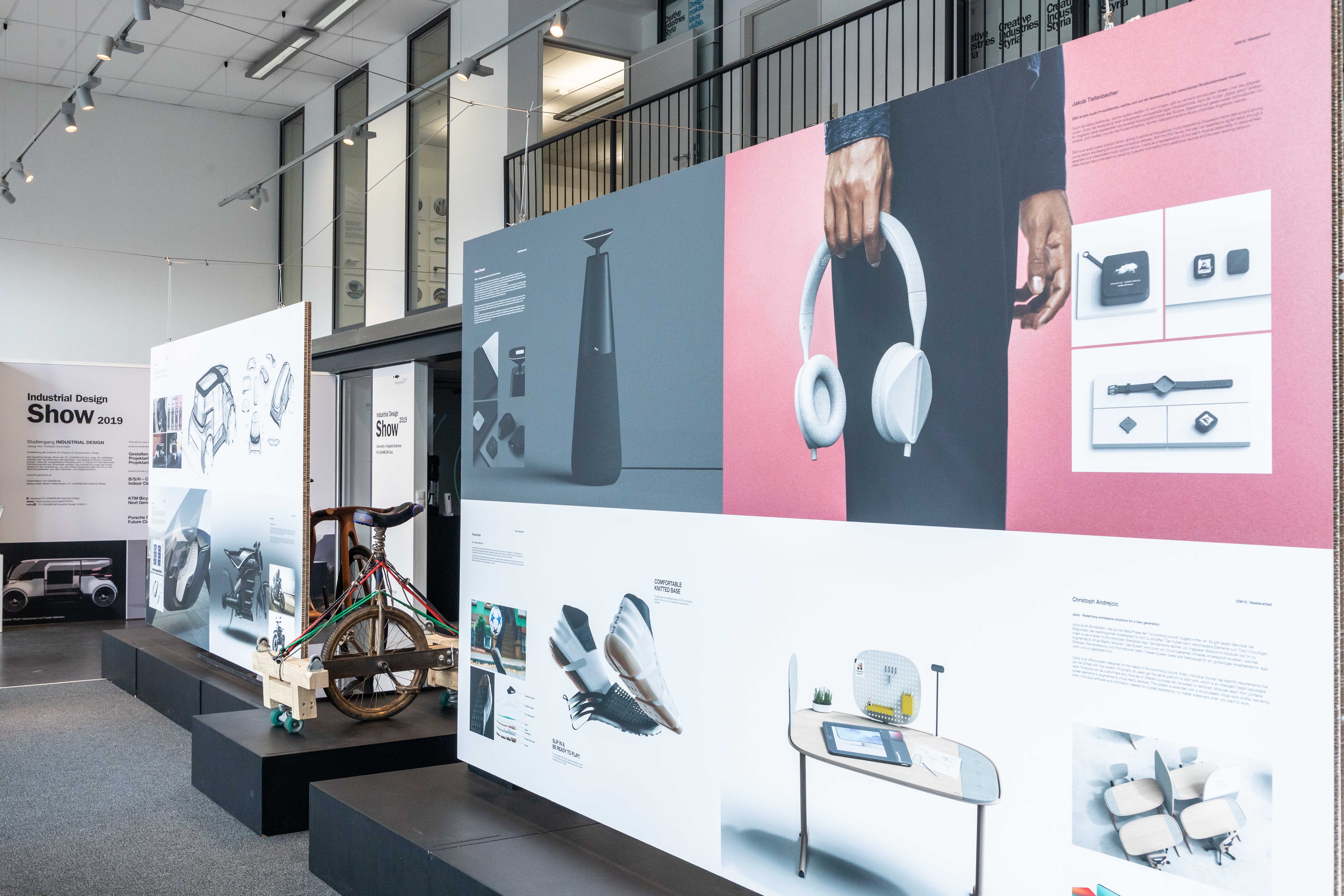 Die Industrial Design Show der FH JOANNEUM Graz zeigt die vielfältigen Arbeiten der Studierenden des Bachelor- und Masterstudiums Industrial Design. Viele der ausgestellten Entwürfe sind im Dialog mit internationalen Partnerunternehmen entwickelt worden. Die Ausstellung zeigt das breite Spektrum der Ausbildung, von den ersten Designübungen bis hin zu den Abschlussarbeiten aus dem Bachelor- und Masterstudium.