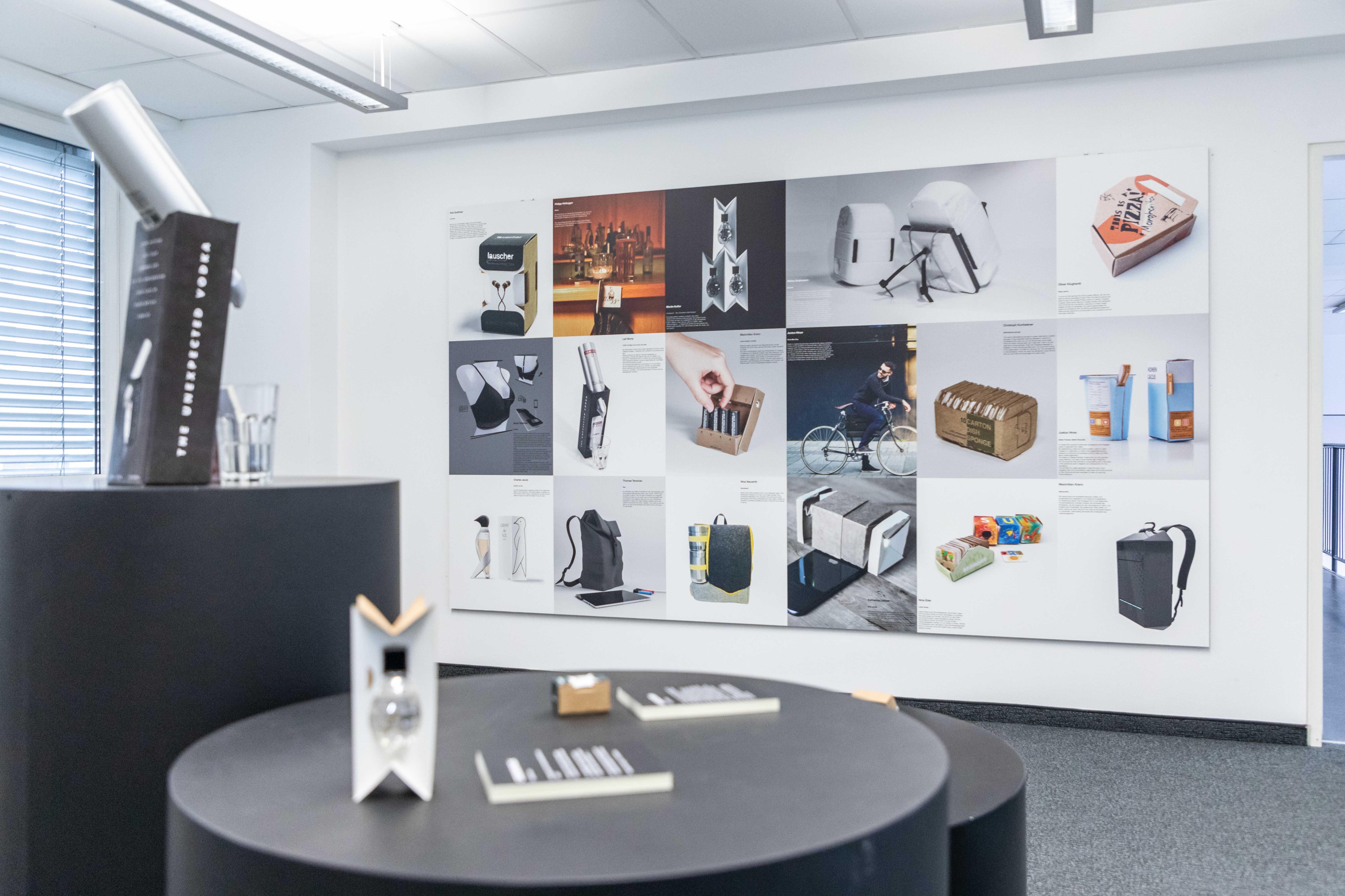 • Arbeiten des ersten Jahrgangs aus den Lehrveranstaltungen GESTALTEN und PACKAGING DESIGN sowie die erste Projektarbeit zum Thema „Taschen“.